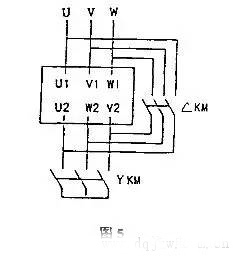 当AKM的主触点闭合时,如图4所示,u相绕组U1和U2的头端和尾端连接到u相电源,V和w相绕组的头端和尾端分别连接到V和w相电源,因此三相绕组没有电流,因此Y正常启动,并且△ 停止跑步。
